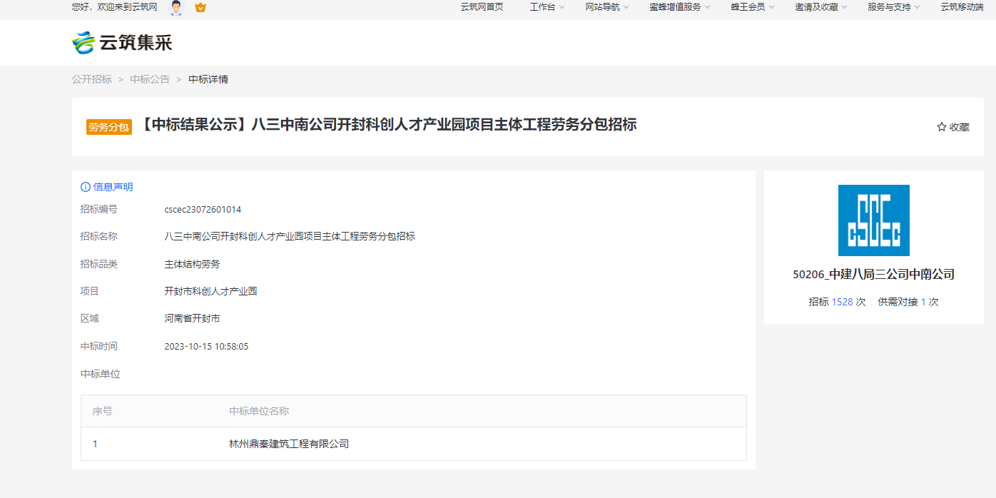 鼎秦建筑中標:八三中南開封科技園項目